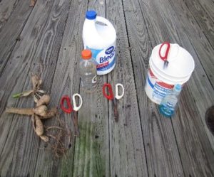 Be sure to have one of the sterilization options sitting on your cutting bench to sterilize those cutting tools between each clump. I will have two or three cutters and both the bleach and soap solutions on my bench. The tools will be used in turn. Each will get a bleach dip and a soap rest while waiting for the next clump!